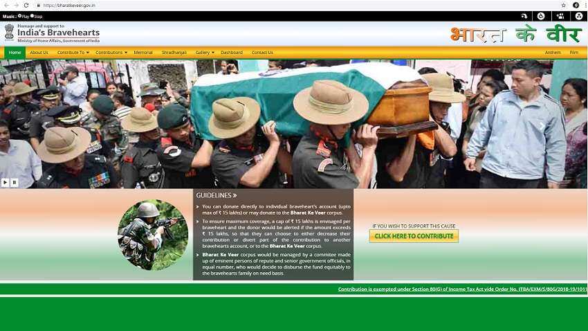 'भारत के वीर' वेबसाइट पर शहीद परिवारों की मदद के लिए कंट्रीब्यूशन किया जा सकता है (फोटो- bharatkeveer.gov.in).